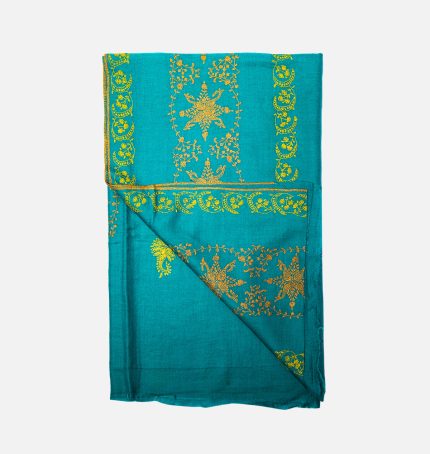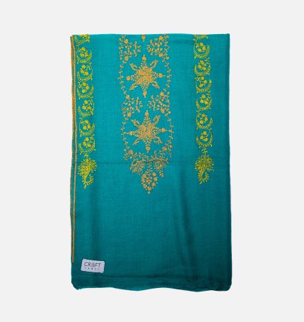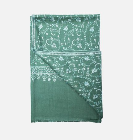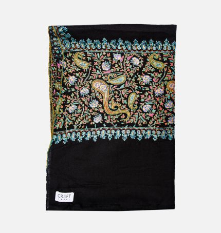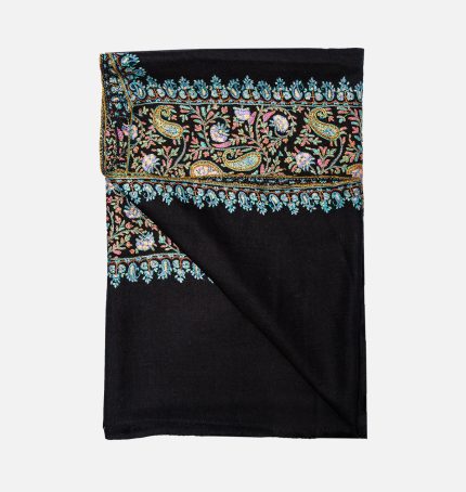 Delicately hand crafted in pure pashmina ,this piece of elegance and warmth well know as palldar has been intricately hand embroided with paisleys and floral designs with blissful colors on the Pallu, indeed a marvel to touch.