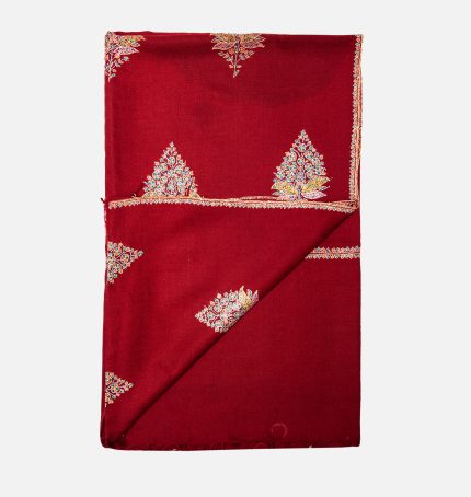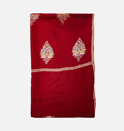 This elegant hand wooven designer pashmina shawl has been painstalikgly embroided with centurioes old intricate sozni design all over it, making one love to witness a tangible cascade of fineness, refinemnet and royalty.