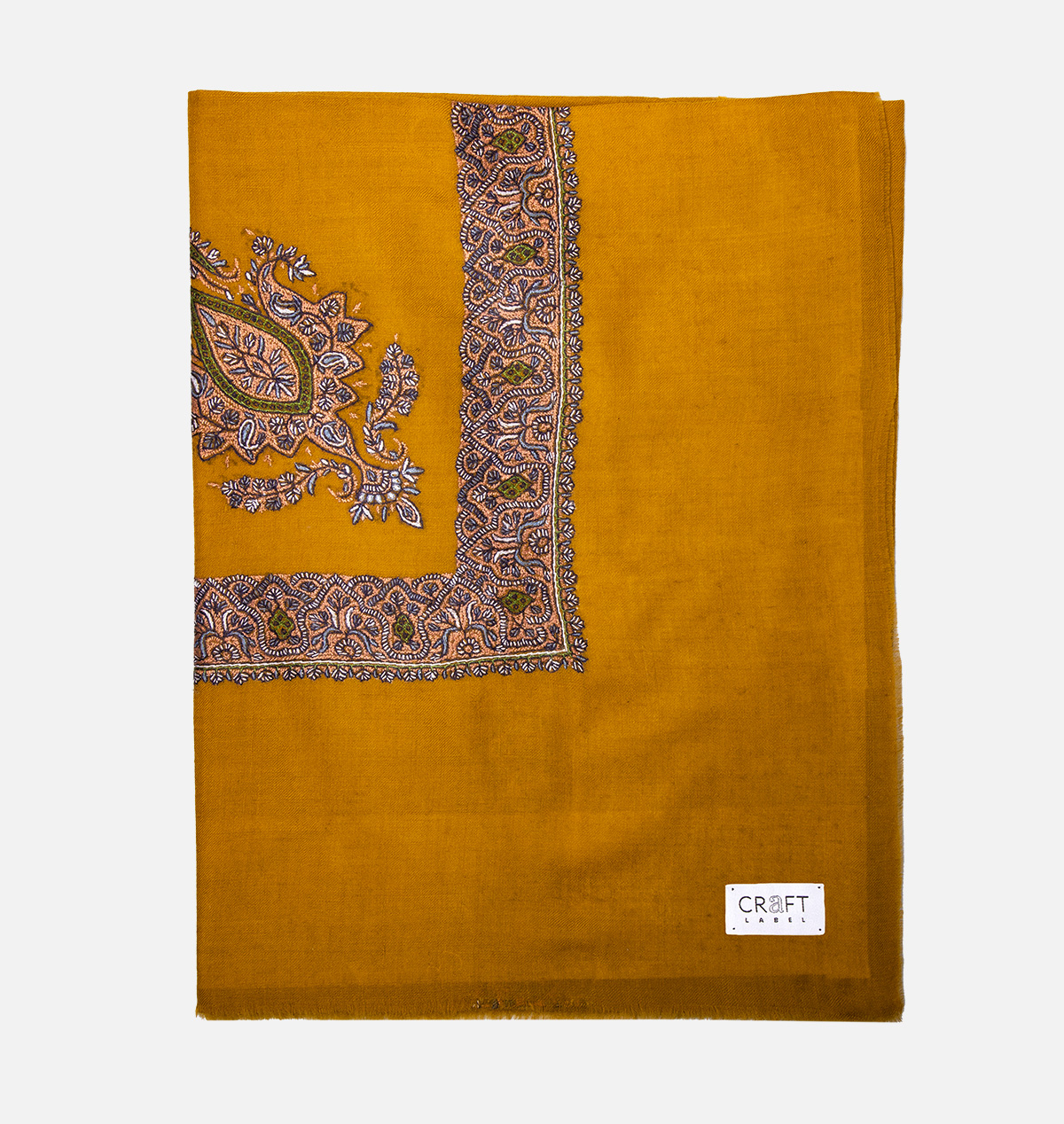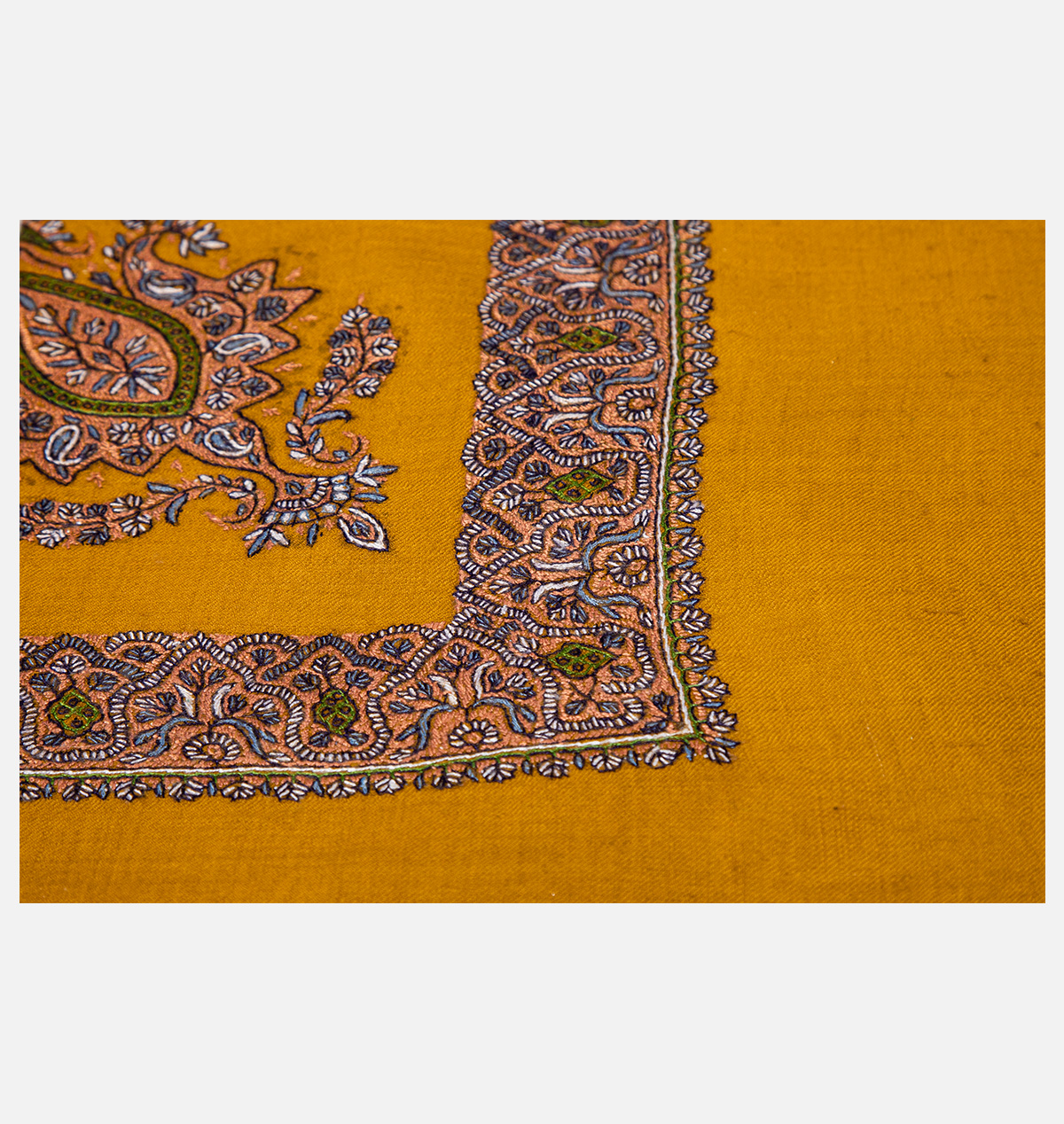 Pristine pure pashmina shawl embroied upon by hand with intricate sozni neemdor design woowen with utmost attention to detail (Available in 54/56/58 inch)