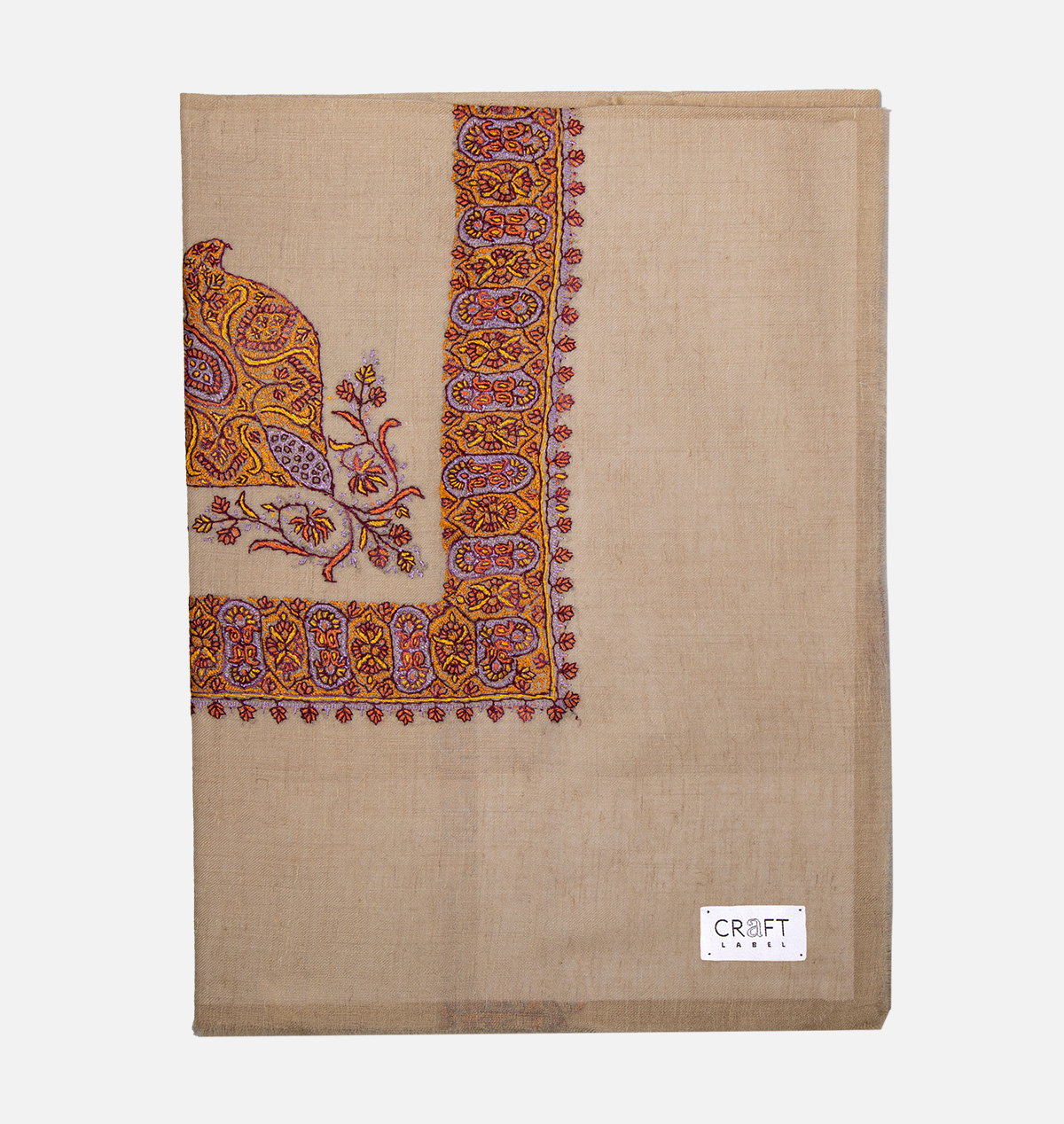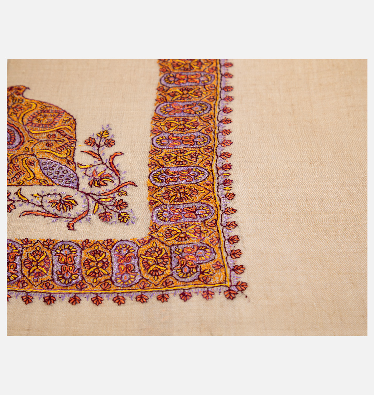 Pristine pure pashmina shawl embroied upon by hand with intricate sozni neemdor design woowen with utmost attention to detail (Available in 54/56/58 inch)